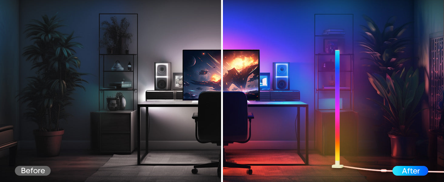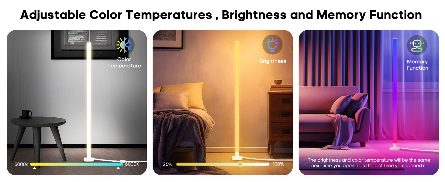 Very slender and modern design with easy light adjustment. The unit is quickly assembled with no tools nor any special skill required. One can adjust the overall height of this light by using, or not using, the individual jointing pieces. The light can be positioned to be "just right." The remote is magnetized for easy placement and usage.